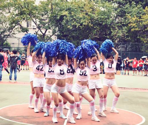 随之,我院啦啦队也进入比赛,为男篮加油打气,并取得了突破性的成绩。