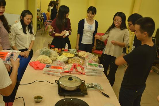 当日晚上,大家一起聚在学生之家煮了火锅,同学们一起分享了来自不同地方口味差异。气氛非常和谐。