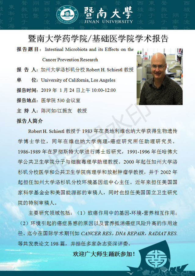 学术报告:Intestinal Microbiota and its Effects on the Cancer Prevention Research