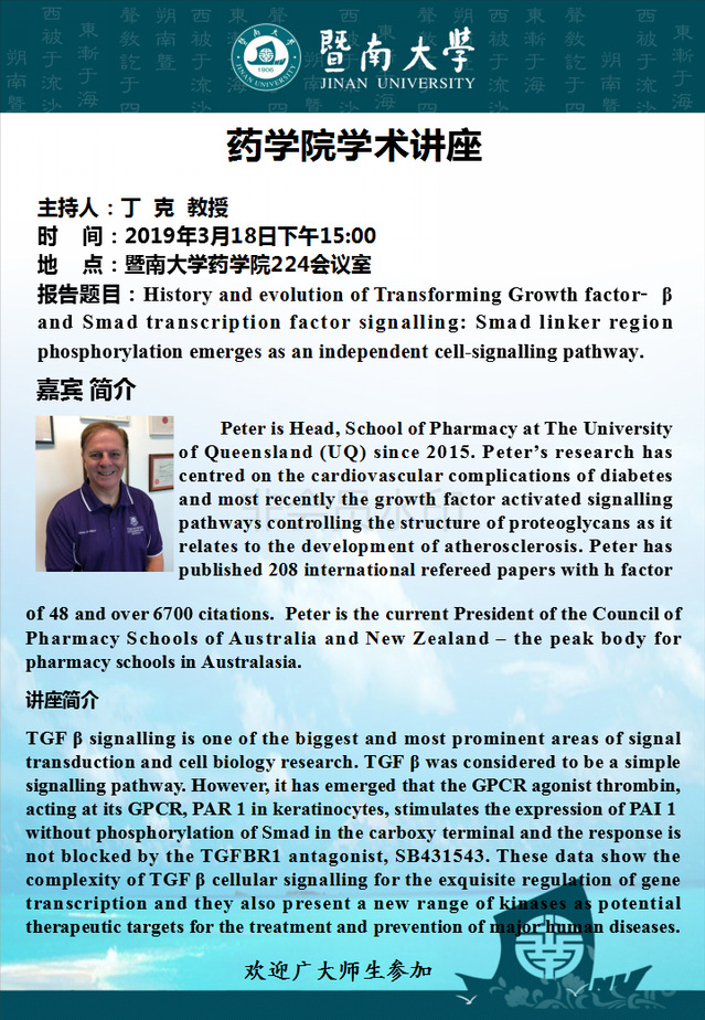学术报告:History and evolution of Transforming Growth factor‑ β and Smad transcription factor signalling: Smad linker region phosphorylation emerges as an independent cell-signalling pathway