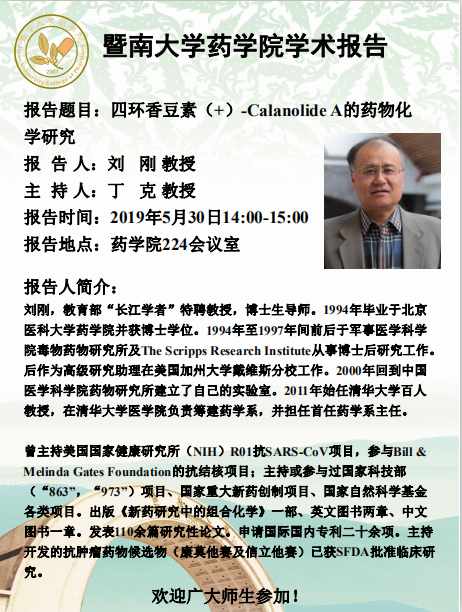 学术报告:四环香豆素(+)-Calanolide A的药物化