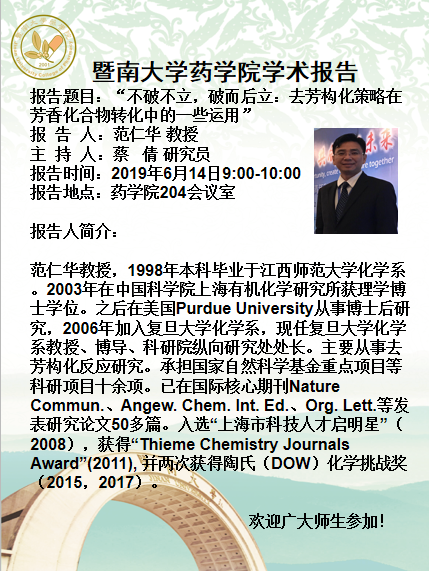 学术报告:“不破不立,破而后立:去芳构化策略在芳香化合物转化中的一些运用”