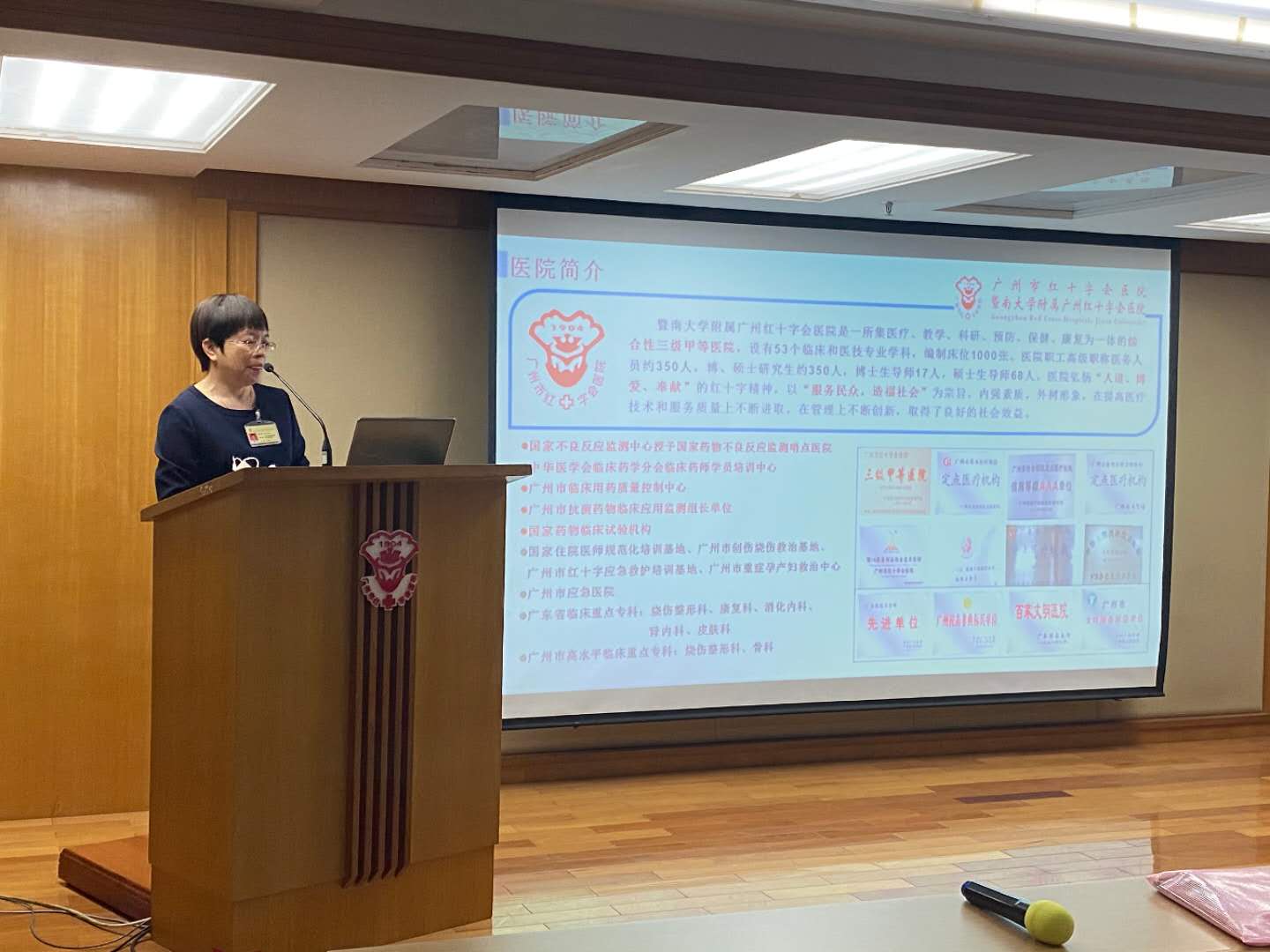 红会医院药学部潘珍副主任随后向暨大师生介绍药学部的基本情况,着重介绍近年来在药品供应保障、药学服务、科研工作方面开展的工作和取得的成果,以及在本科教学情况。