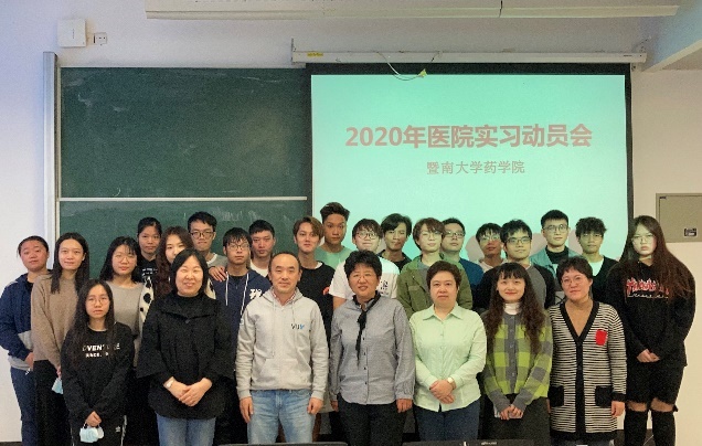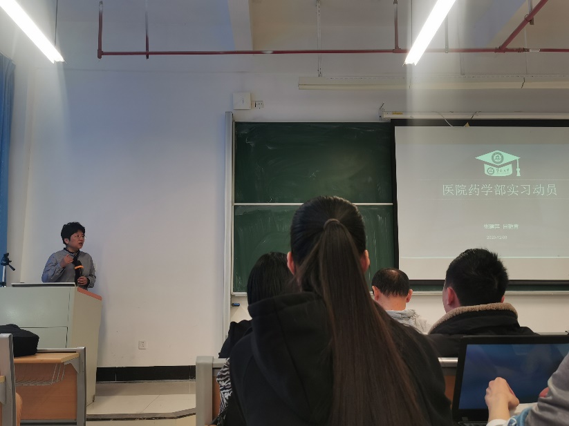 2020年12月9日,同学们汇聚在番禺校区206教室。这次医院实习动员会参会的有张建萍、吕艳青、单璐琛、肖瑛、朱颖杰老师。我们有幸邀请了江正瑾副院长,院领导的发言提高了同学们的士气,鼓舞同学们凝聚信念、不断进步,成为一名优秀的药师。