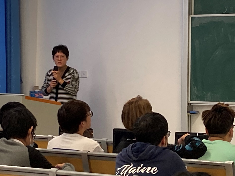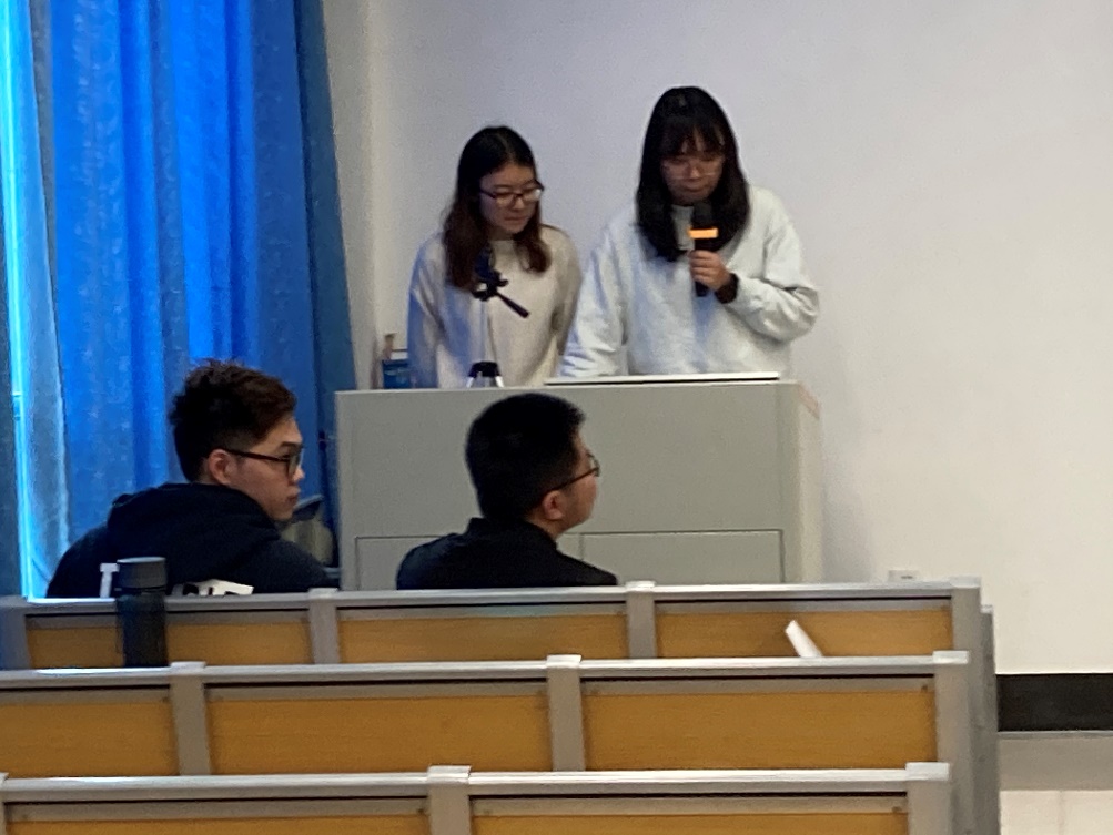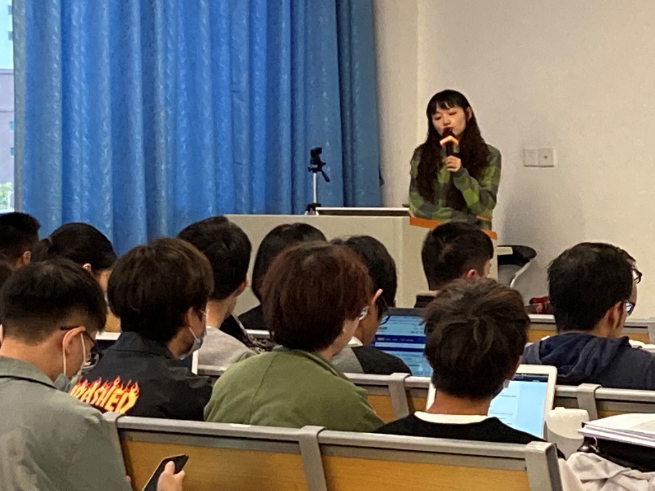 (姚诗慧、孙燕向同学们讲述文献检索的方法和经验)
