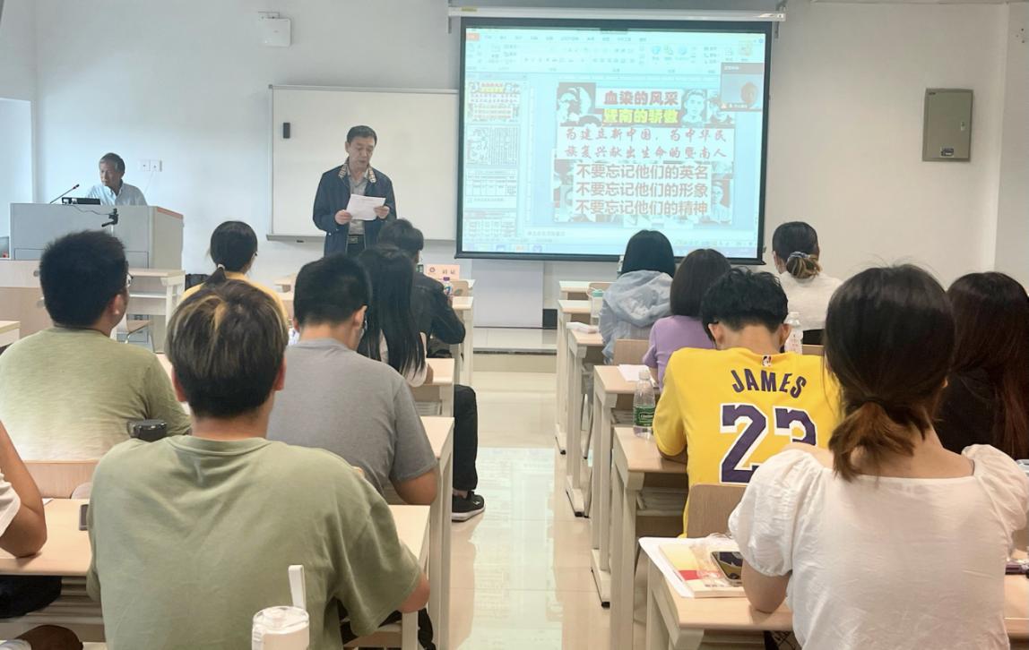 为进一步深入开展党史学习教育,把学习习近平新时代中国特色社会主义思想贯穿始终,同时弘扬爱国主义教育精神,教育引导学生厚植爱国主义情怀,2021年4月15日下午,WilliamHill“学党史明初心”党史系列主题学习暨WilliamHill2021年第87期党员发展对象学习班第二课正式开讲,学院党委邀请威廉williamhill退休教师李胜利教授做《为新中国献身的暨南人》主题报告,讲述暨南英雄故事,学习传承烈士精神。本次报告会采用“主会场+分会场”的形式,线上线下同时开展,全院近100多名师生党员及入党积极分子参加学习。报告会由学院五级组织员、机关党支部书记刘斌主持。