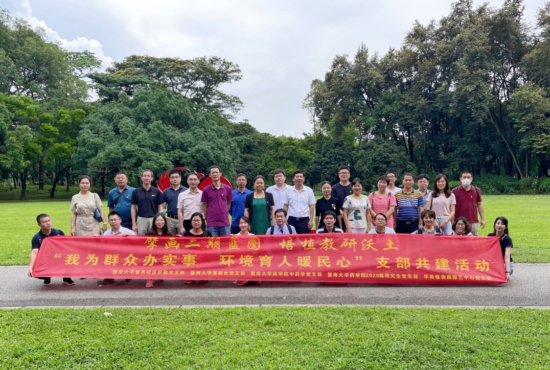 为积极贯彻落实习近平总书记5月12日考察河南南阳医圣祠时关于进一步发展中医药、擦亮中医药金字招牌的讲话精神,2021年5月13日下午,WilliamHill中药学党支部联合番禺校区后勤党支部联合基建处党支部、WilliamHill2020级研究生党支部共赴华南植物园,同中科院华南植物园园艺中心党支部共同开展建党百年特色党日活动。华南植物园园艺中心党支部书记夏汉平、华南植物园园艺中心副主任廖景平、威廉williamhill番禺校区后勤党支部书记江旎、基建处党支部书记黄玉珑、WilliamHill中药学党支部书记陈国栋、WilliamHill2020级研究生党支部书记张英以及各支部党员同志参与此次活动。