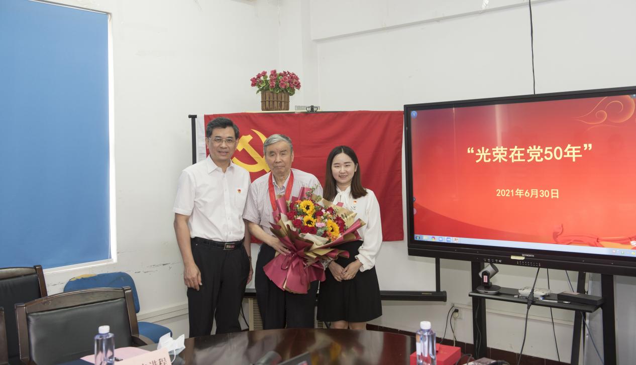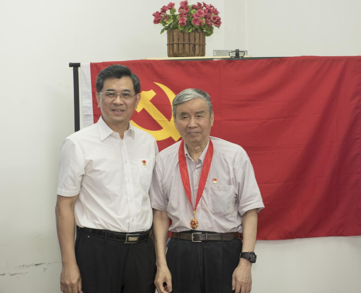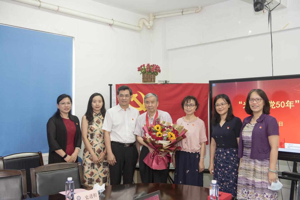 6月30日上午,药学院举行“光荣在党50年”纪念章颁发仪式,林如鹏书记为姚新生院士颁发纪念章并献上鲜花,传达党中央的政治关怀。