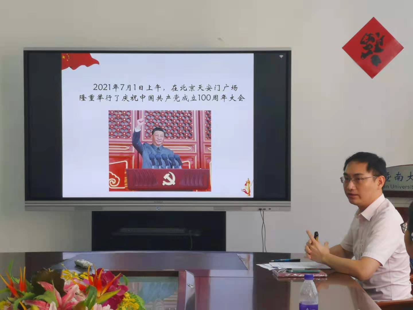 首先,陈国栋书记在会上组织大家学习习近平总书记在庆祝中国共产党成立一百周年大会重要讲话,并向大家分享自己的学习心得体会。