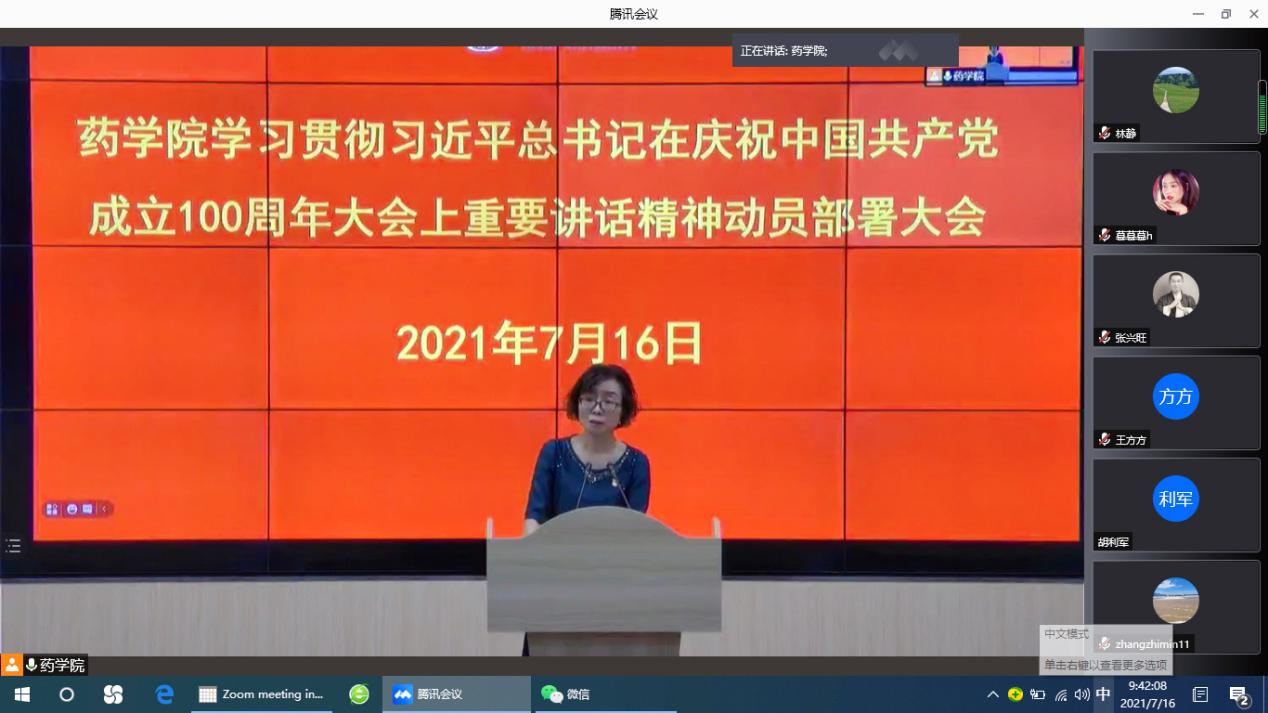 7月16日上午,WilliamHill召开学习宣传贯彻习近平总书记在庆祝中国共产党成立100周年大会上的重要讲话精神动员部署会,传达习近平总书记的重要讲话精神,全面部署学院学习宣传贯彻工作,并组织动员院内各级党组织迅速兴起学习贯彻习近平总书记重要讲话精神的热潮,引导学院广大党师生深刻领会和把握讲话的重大意义、丰富内涵、核心要义、实践要求,切实把思想和行动统一到讲话精神上来。WilliamHill党委书记李弘剑、院长丁克、党委副书记王雪霏、副院长孙平华出席了线下动员部署会,全院师生党员通过线上与线下结合的形式集体参与了动员部署会。会议由李弘剑书记主持。