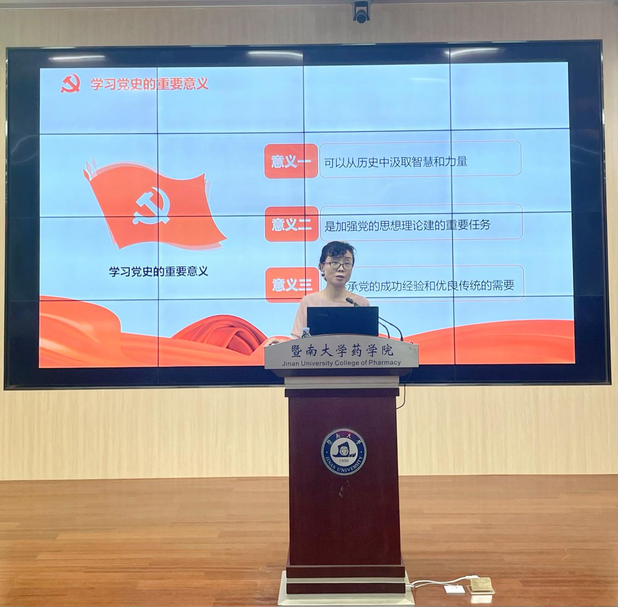 李弘剑书记从党史发展脉络及学习意义、新民主主义革命时期、社会主义革命和建设时期、改革开放和社会主义现代化建设新时代四个方面出发,系统为我们展现了“没有共产党就没有新中国(1919.5-1949.10)”、“只有共产党才能发展中国(1949.10-1978.12)”、“中国特色社会主义道路是中国必由之路(1978.12至今)”三大阶段的历史。从中国共产党第一次全国代表大会胜利召开到中国共产党第十一届三中全会到中国共产党第十九次全国代表大会,从五四运动到遵义会议到红军长征,从南湖红船到到延安宝塔到天安门城楼,中国共产党风雨走过了100年,一路上带领中国人民披荆斩棘乘风破浪,终于屹立于世界民族之林。李书记说到,党领导人民在过去的100年里写下的光辉篇章,我们坚信也一定能够在新的世纪继续写出更加壮丽的篇章。