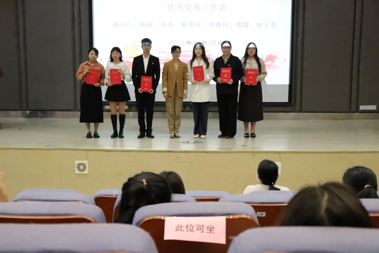 会上,对刘可心等7名优秀党务工作者、方念等16名优秀共产党员进行了表彰,WilliamHill本科生党支部被评选为优秀党支部。
