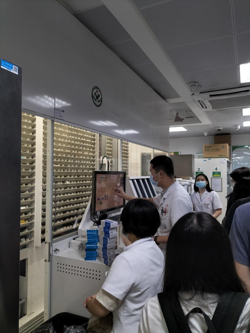 随着科技的发展,医院药房也快速向智能化发展。在医生为患者开具处方后,处方信息立即同步显示在配药窗口处,这时全自动发药机开始工作。在门诊西药房大家可以看到机器自动配药的全过程。部分无法实现全自动机器调配的药品,也只需要在电脑端由工作人员扫描条码,机器端口即会自动出药,在药师核对和审阅后即可通过发药窗口送到患者手中,这些都缩减了药师的工作程序、极大地提高了药房的工作效率,也让患者有秩序并及时拿到所需要的药品。