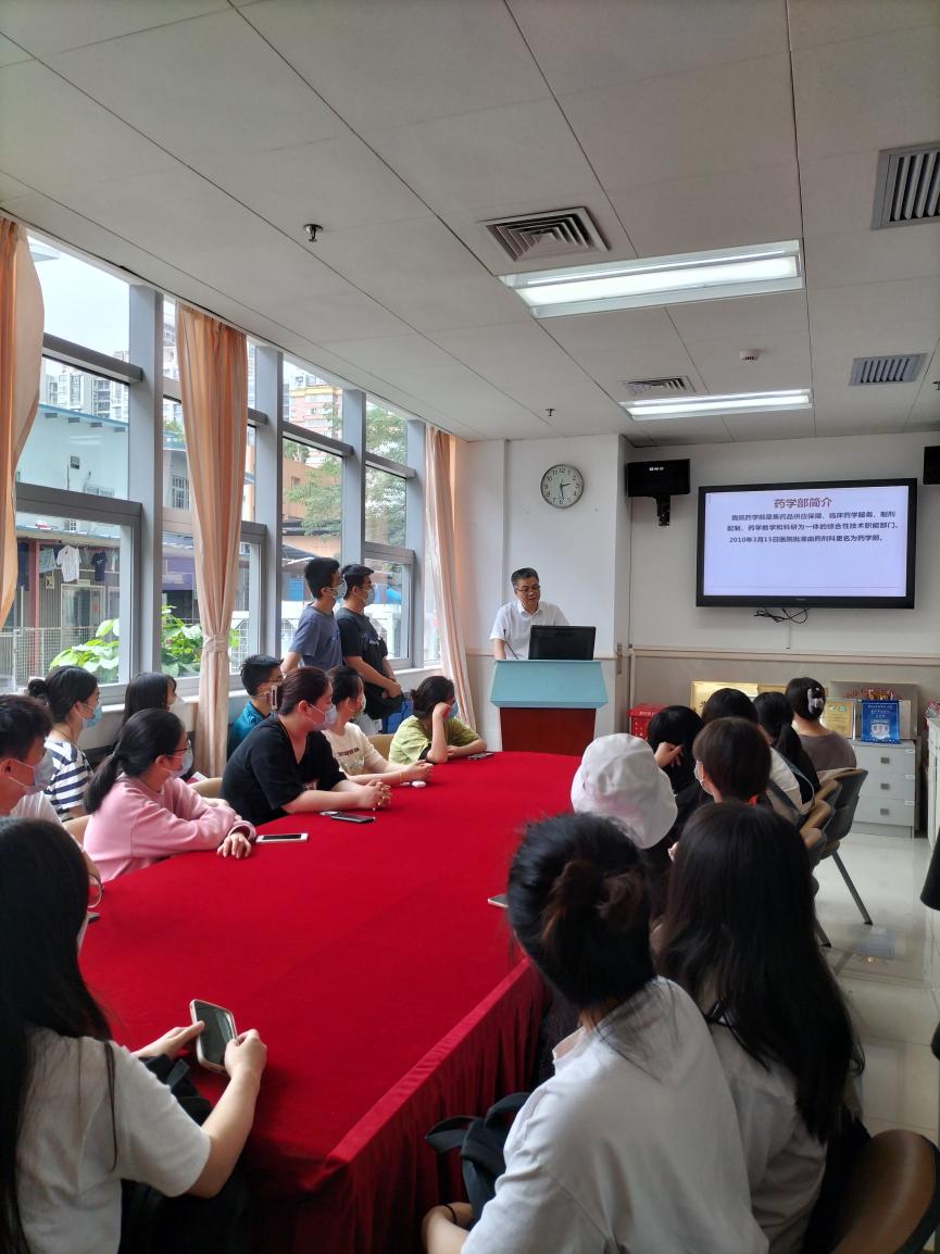 首先药学部张志东副主任带领同学们来到药学部会议室,介绍了药学部的人员架构、岗位职能、临床药学、职业规划、医院发展等方面的情况,让同学们从整体上了解到医院药学部的现状和未来的发展趋势,从而理解药师在医院的重要作用价值。