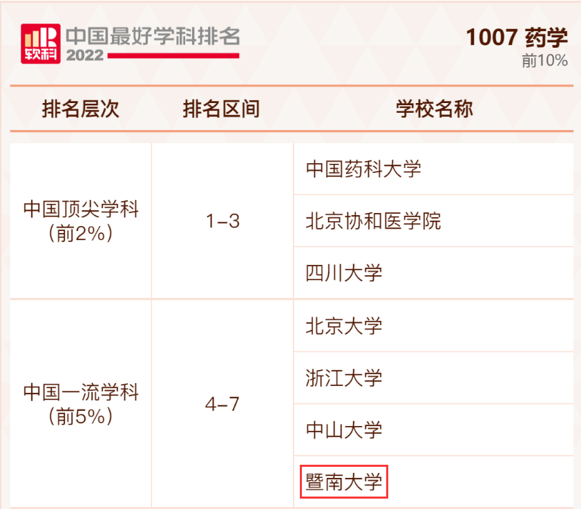 9月21日,高等教育评价专业机构软科正式发布“2022软科中国最好学科排名”,威廉williamhill药学学科位列全国第7名,继续保持全国前5%的水平,进入中国一流学科行列!