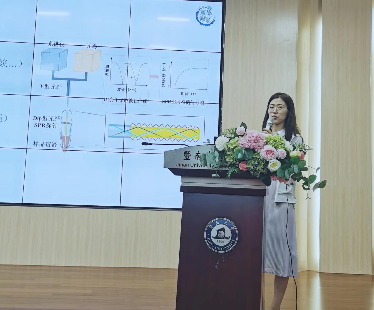 曲佳欢博士于2022年从比利时鲁汶大学加入我院,她以“基于光纤SPR传感器的生物药物及临床诊断分析”为题,介绍了光纤SPR技术相比于传统芯片型SPR的优势(成本低、复杂体系实时检测、设备小巧利于便携等),其研究方向主要基于SPR研究的关键问题,从检测原理、性能和设备三方面进行,包括优化表面化学方法来开发复杂体系中的生物检测新方法,建立血浆中自身免疫疾病抗体标志物的多元检测方法,首次实现新冠肺炎病人新鲜血液(未稀释)中RBD抗体的直接检测,以及成功将光纤SPR与自供能微流控技术相结合,开发便携式传感器用于自身免疫疾病病人体内的阿达木单抗药物监测。