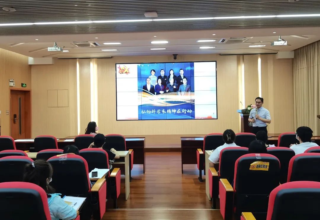 陈国栋书记用趣味生动的方式给同学们介绍了国家的发展和爱国科学研究者的故事,有经历“五年忍辱归国路,十年求索两弹成”的钱学森院士,有“教书育人不倦,抗疟良药研成”的梁晓天院士,还有“抗美援朝争先,中药现代化为己任”的姚新生院士。前辈们的故事无不激励着青年同志们去思考什么是科学家?什么是科学精神?