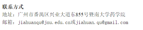 (2)研究生课程:《科研论文写作》、《现代药物分析学选论(全英)》、《仪器分析》、《药学前沿进展》