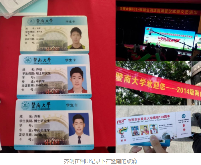 在暨大求学的8年,齐明见证了学校的许多重要时刻,“习近平总书记莅校视察、药学学科两度入选“双一流”建设学科名单、苏炳添教授闯入东京奥运会百米决赛……”