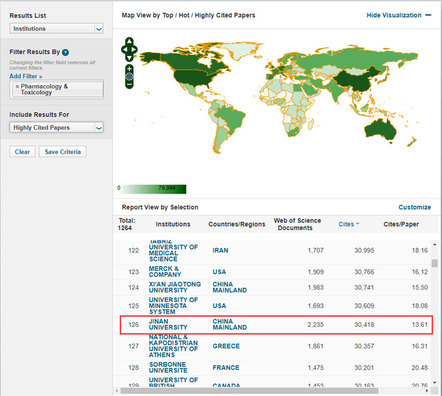 根据科睿唯安“基本科学指标数据库”(Essential Science Indicators,简称ESI)2024年1月11日公布的最新数据显示,药理学与毒理学学科上榜机构数1264,我校药理学与毒理学学科位列全球第126位,排名前0.997‰,标志着我校药理学与毒理学学科首次进入ESI全球前1‰,药学学科建设取得新突破!