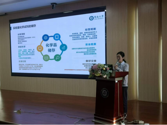 讲座由陆小云副院长主持。她指出,安全无小事,实验室安全不仅是学院工作的重中之重,更是保障教学科研活动正常开展的基本前提。她希望通过此次讲座,能够进一步提高师生的安全意识,不断强化实验室安全管理,确保实验室安全运行。
