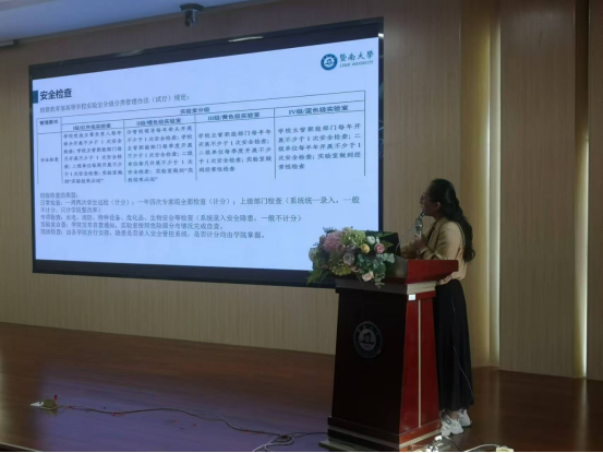 马淑燕老师对学校实验室安全检查工作进行了讲解,详细解读了实验室安全检查的类型及学校实验室安全计分细则。