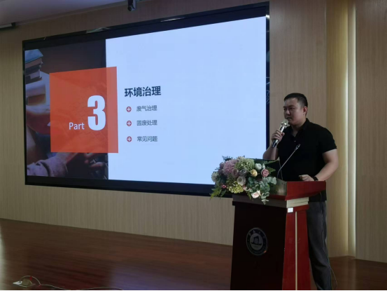 王明明老师则就学校实验室环境治理方面问题进行了讲解。他介绍了实验室与设备管理处作为牵头部门,在废气治理设施建设、实施和日常维护保养方面所做的工作,同时说明了教育部对于实验室化学废弃物的收集、分类和转运的要求,强调必须做好化学品使用台账记录、废液存放及标签贴签等日常工作。