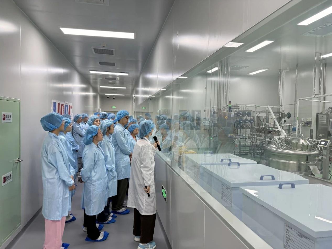 学院师生参观了企业文化墙,走进大分子生物药生产基地,实地参观原液与制剂生产车间。大家对公司有了更全面的了解,也对生物制药的生产流程有了更加直观的认识。